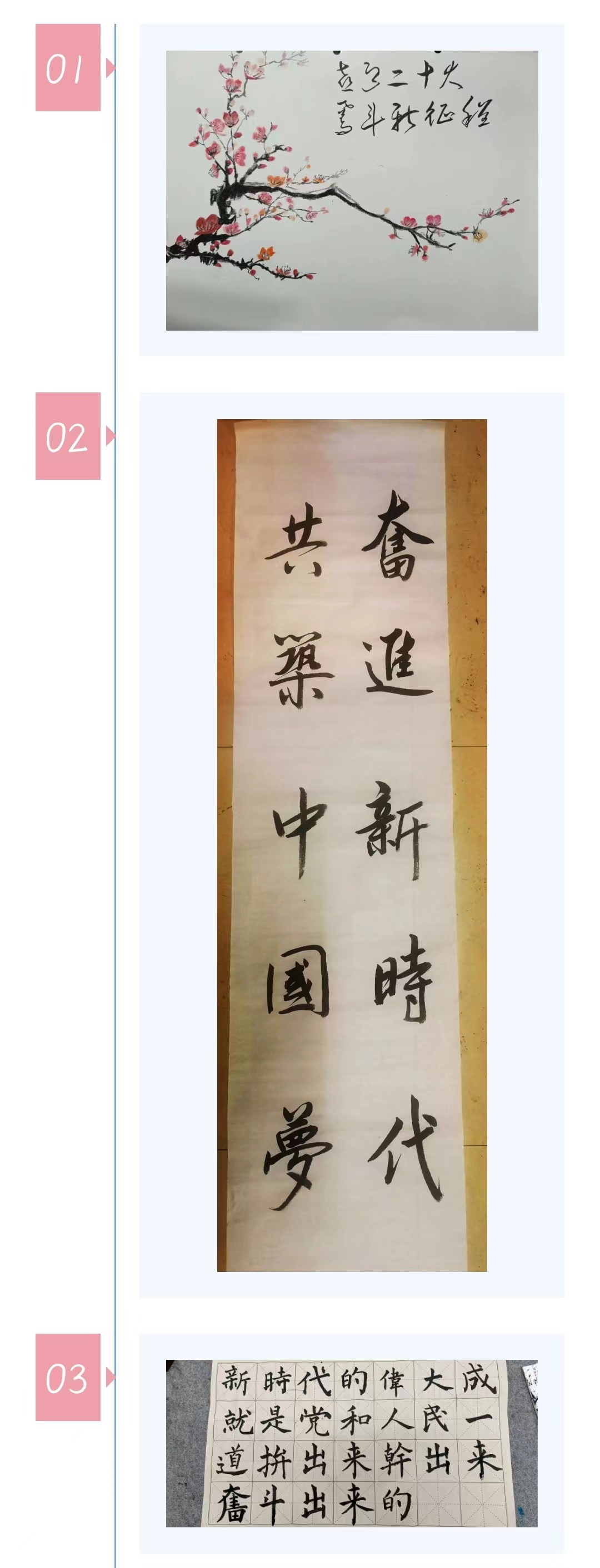 本次活动以“丹青妙笔,光影山河”为主题展开,比赛分为“书法绘画”和“摄影”两个组别,同学们用笔墨和光影来记录伟大祖国日新月异的发展面貌和新时代大学生朝气蓬勃的精神风貌。本次活动精心筹备,广泛动员,同学们积极踊跃报名,选择各自擅长的组别紧紧围绕主题进行创作。“书法绘画组”的同学绘出傲雪欺霜的梅花,以展示祖国不畏霜雪严寒面对冷酷迫害毫不示弱、无所畏惧的形象。同学们的书法作品大气磅礴、苍劲有力,展现出同学们的书法功底。“摄影组”的作品贴近生活,内容丰富多彩,同学们的摄影作品展现祖国的大好河山并记录下人民美好生活的瞬间,展现出同学们对当今美好生活的赞美、对党和国家的炽热情怀以及美好祝愿。最后,同学们的参赛作品经由评委打分与学生投票综合评选,并在郑工土木团学公众号上公布获奖结果。